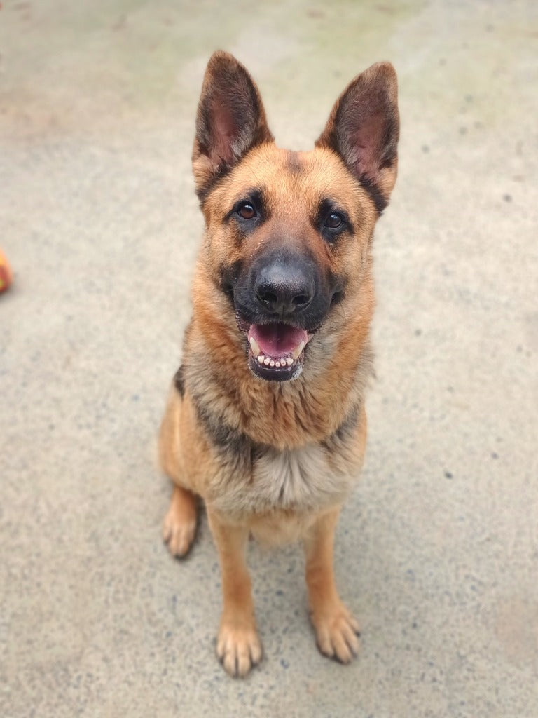Waffle is super affectionate with humans, once she knows you, she will lea if for pats and loves to cuddle, she thinks she is an oversized lap dog. Waffle loves being wherever her people are and will follow you around the house, she is an excellent foot warmed and can be a bit of a couch hog.